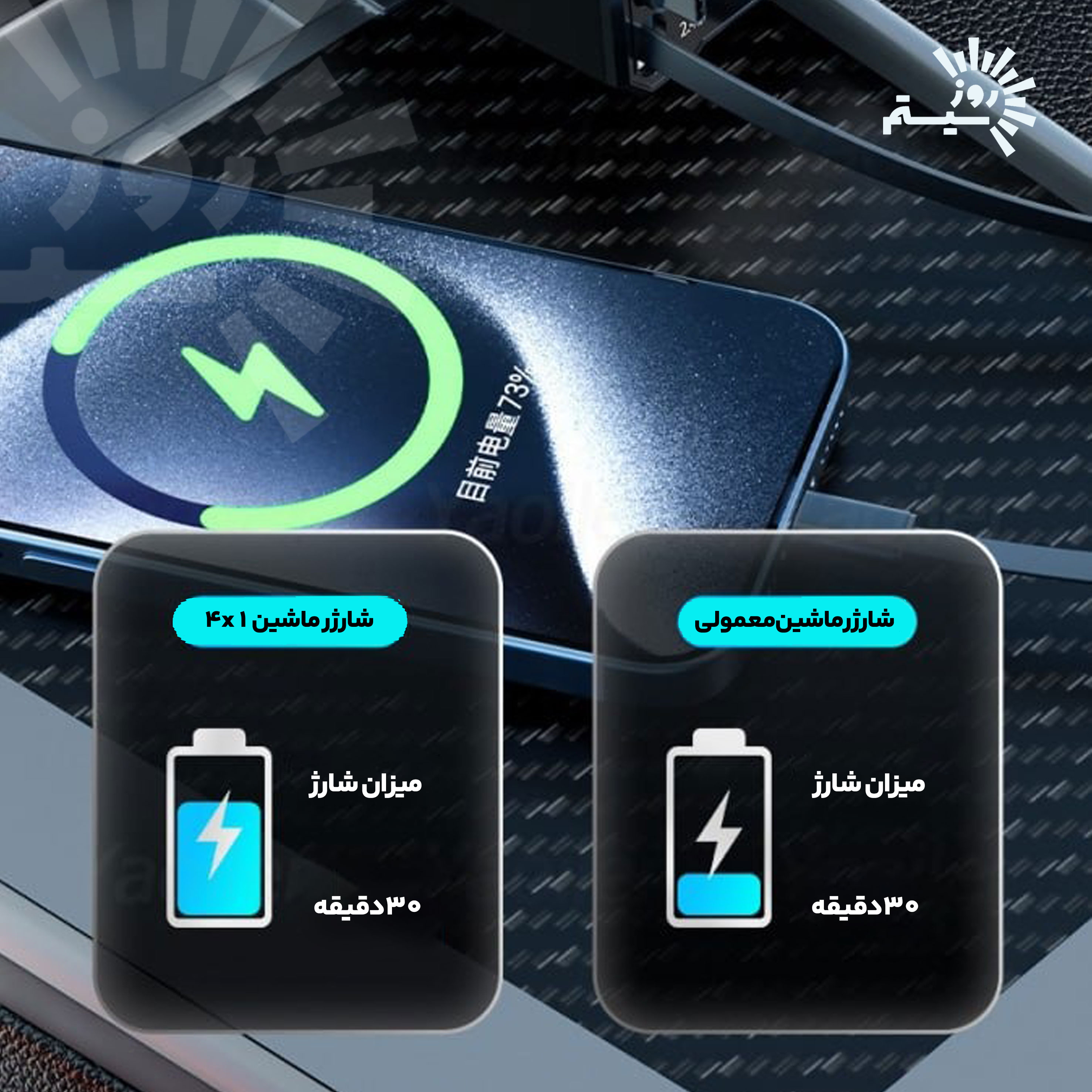 چون «4 در 1» است و کابل های جمع شونده دارد، ممکن است طول کابل ها یا آزادی جابجایی کمتر از شارژرهای معمولی باشد؛ اگر نیاز به کابل بلند دارید، توجه کنید.