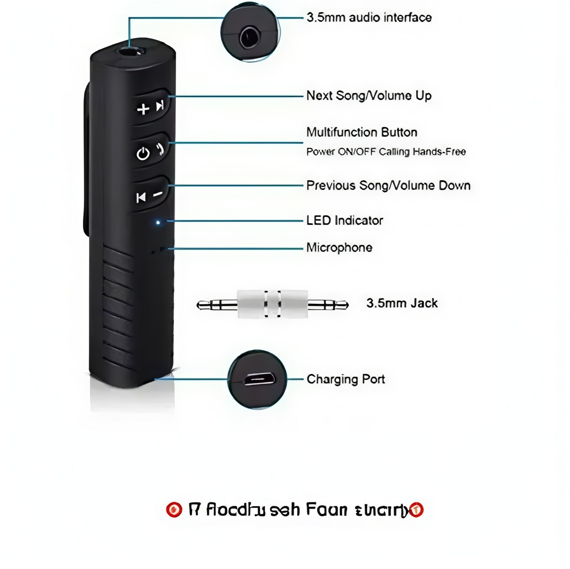دانگل بلوتوث aux خودرو دارای سه کلید تعبیه شده است، مانند کلید کنترل از راه دور برای موسیقی، افزایش/کاهش صدا و پاسخگویی به تماس.