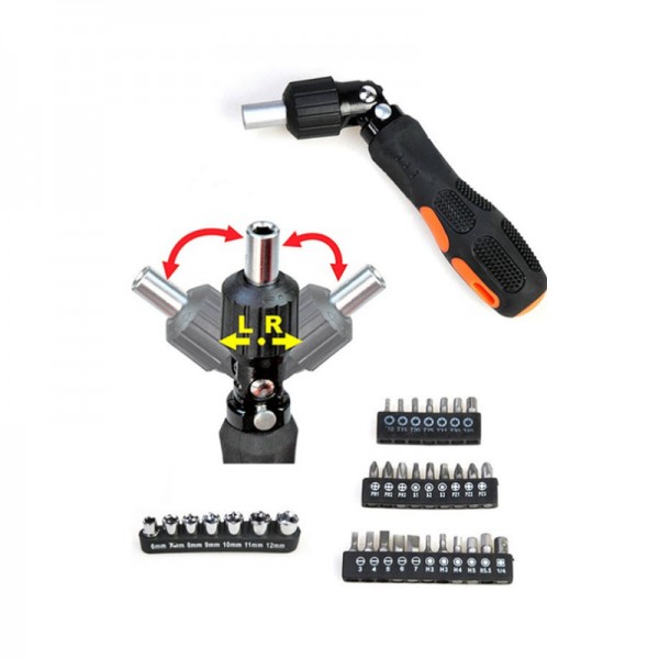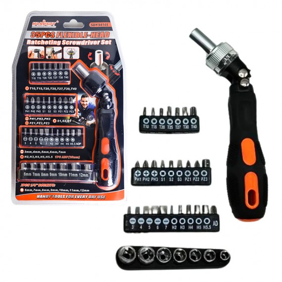 مجموعه 35عددی پیچگوشتی تاشو جغجغه ای سانشنگ دارای 27عدد انواع نوک پیچگوشتی در سایزها و مدل های مختلف ، 7عدد بکس پرمصرف ، قابلیت تاشوندگی پیچگوشتی و قابلیت جغجغه ای میباشد. این مجموعه مناسب برای تعمیرات موبایل ، امور خانگی و امور تعمیراتی میباشد.