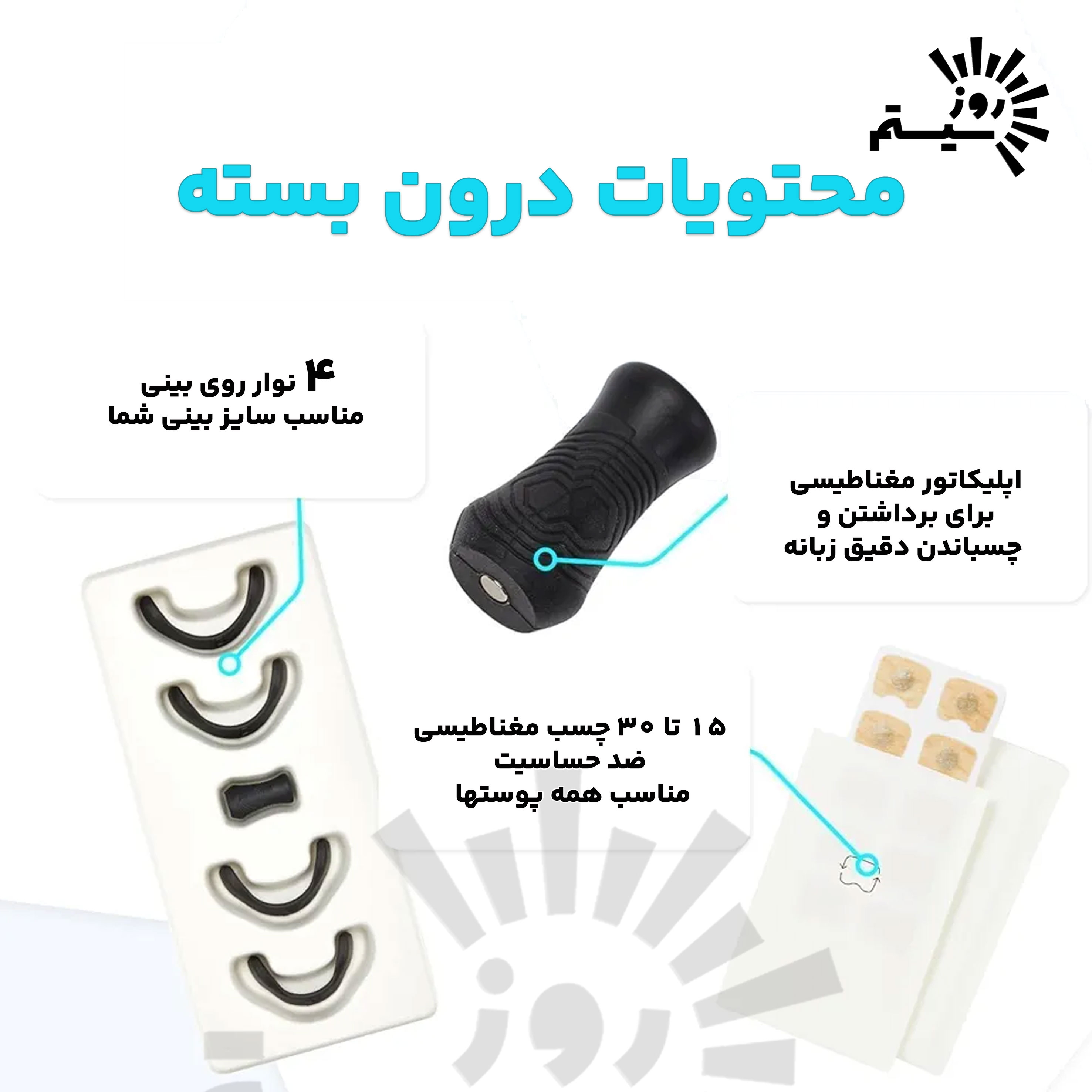 با کیت گشاد کننده تنفسی بینی ورزش و خواب ضد خروپوف تنفس شبانه و هنگام ورزشت را راحت تر و بیشتر کن. این کیت دارای ۴ سری با اندازه های مختلف بوده تا به میزان دلخواه و مناسب باز شدن بینی را جهت تنفس بهتر در هنگام ورزش و خواب , کاهش تحریک پذیری بینی در زمان حساسیت و رفع خروپوف های شبانه طراحی شده است. ویژگی های اصلی کیت گشاد کننده تنفسی بینی ورزش و خواب ضد خروپوفکاهش فوری خروپوف بدون نیاز به داروبهبود اکسیژن رسانی مغز هنگاه خوابباز کردن راه تنفسی بینی با فشار مغناطیسی ملایمراحتی کامل هنگام استفاده در خواب و ورزشقابل استفاده برای آلرژی فصلی , انحراف بینی ورزشکاران
